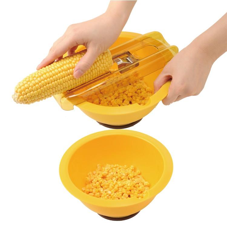 吸盤付きのボウルとスラスサーのセット。信頼の日本製。軽い力で切れて食材が滑りにくい波型の歯がポイント。トウモロコシの粒取り器もセットになっているので、サラダや生トウモロコシのコーンスープなど作るときも活躍します。