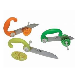 C型形状のハンドルで、握力の弱い人も力が入れ易く イスに掛けても使いやすい包丁。